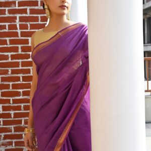 Purple Color Silk Cotton Solid Maheshwari Handloom Saree