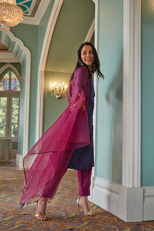 Dharan 'Charchara Print Pintuck Kurta' Blue Block Printed Kurta