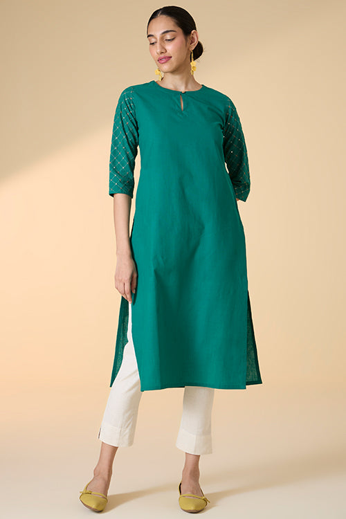 Okhai "Sarang" Hand-Embroidered and Mirrorwork Pure Cotton Emerald Green Kurta