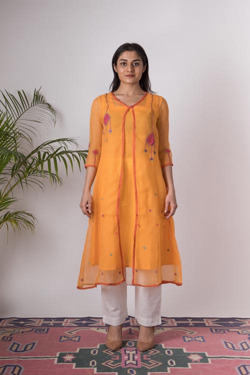 Urmul 'champa' Hand Embroidered mustard chanderi kurta
