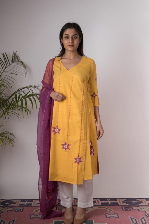 Urmul 'Pyaari' Hand Embroidered Yellow kotta doriya kurta . 2pc set (kurta and dupatta)