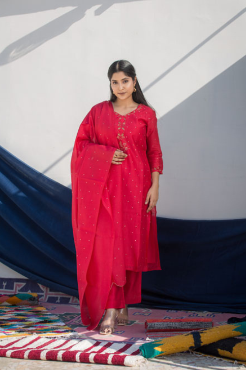 Urmul'Advika' Festive' Chanderi Kurti.(2Pc Kurta And Dupatta Set)