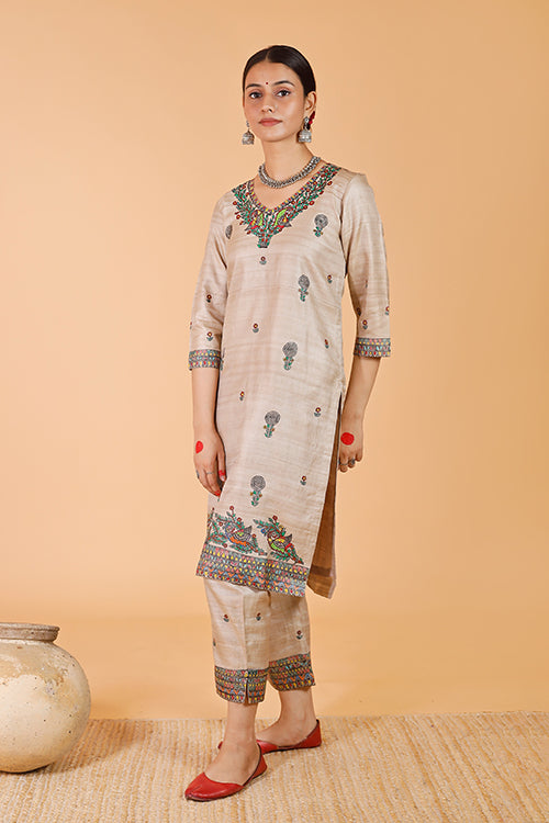 Gubbaro Handpainted Madhubani 'Maithili' Tussar SIlk Kurta
