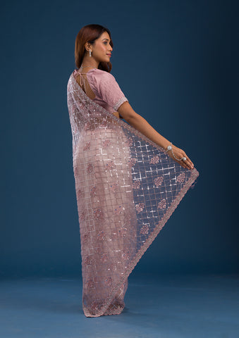 Grey Mirrorwork Tissue Saree