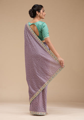 Off White Sequins Georgette Saree