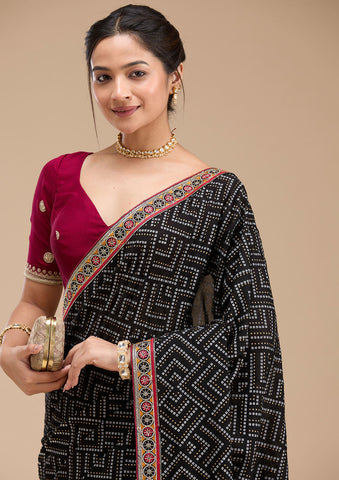 Black Threadwork Georgette Saree