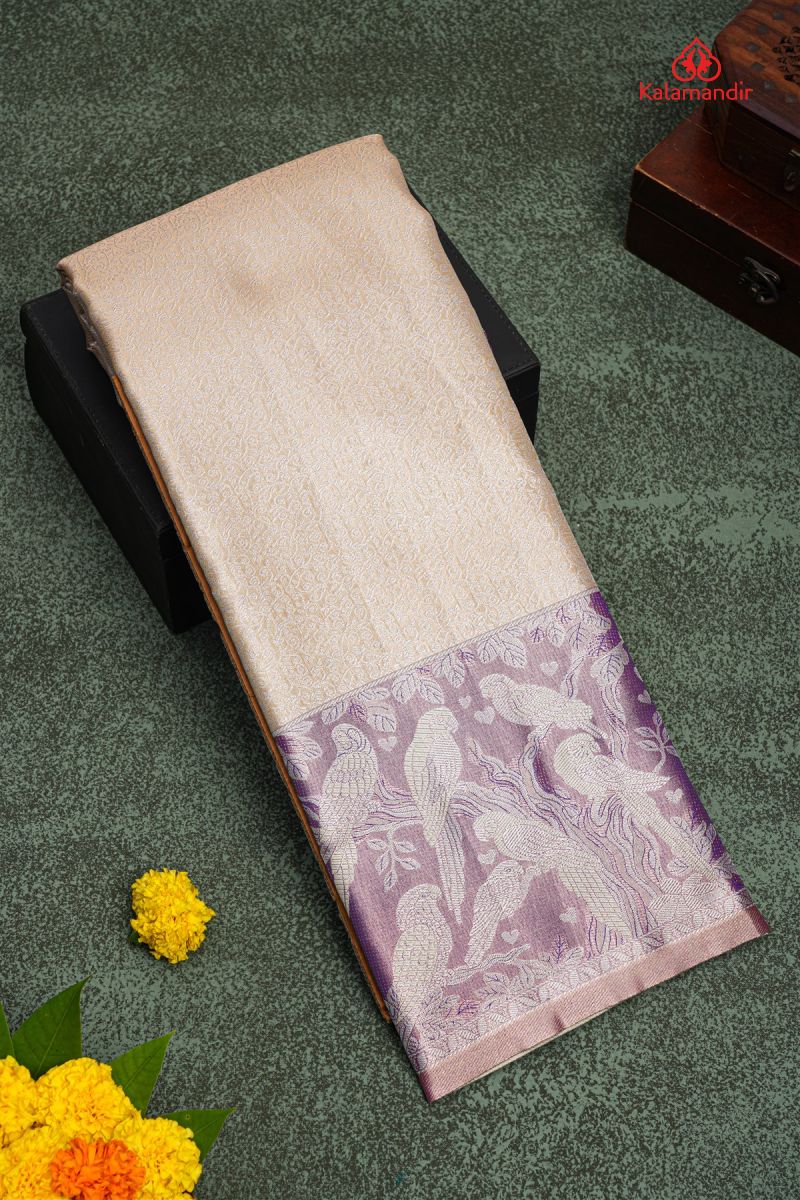 BEIGE and ROYAL BLUE FLORAL JAAL SILK BLEND Saree with SEMI PATTU