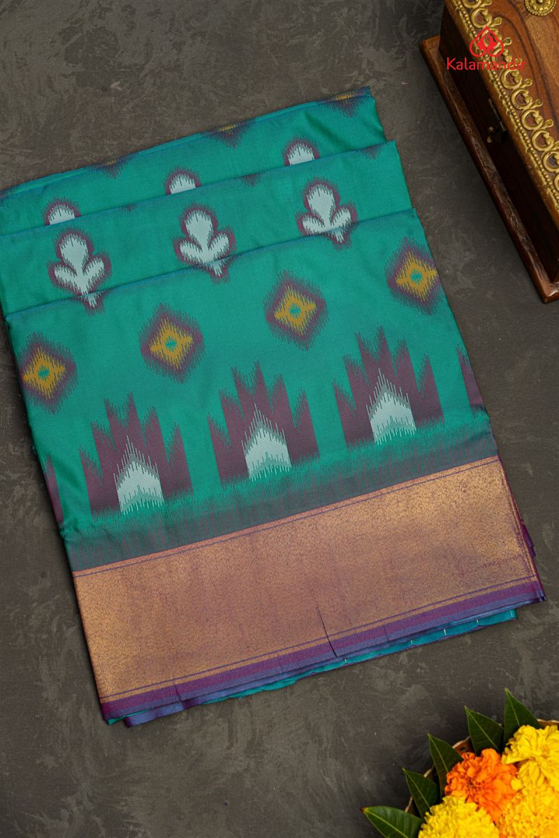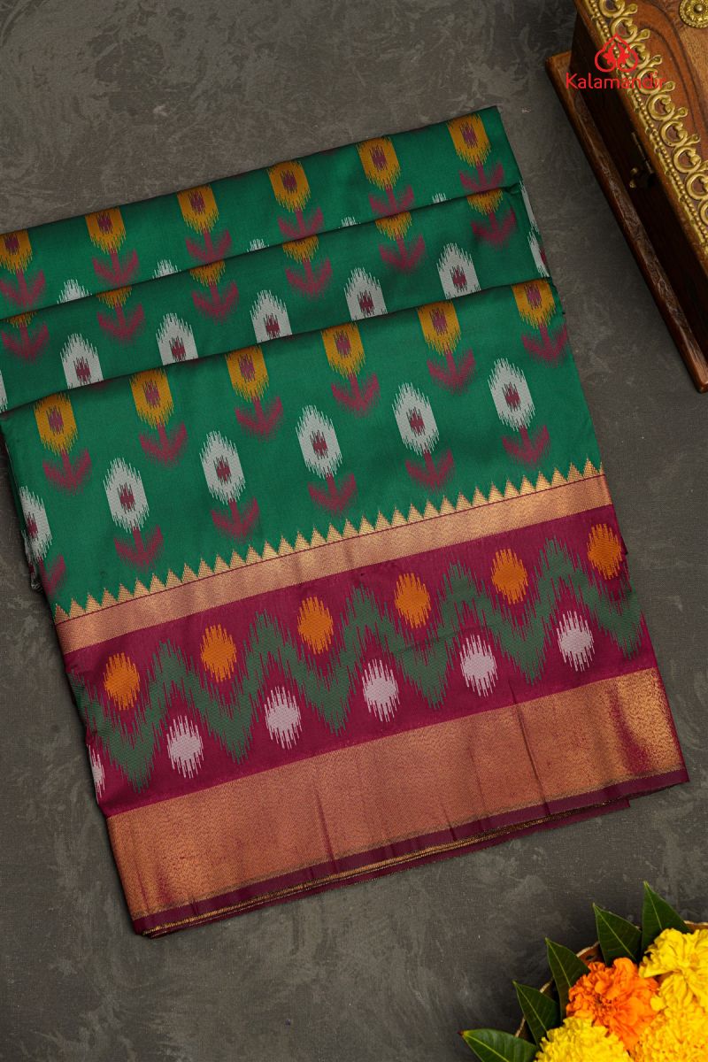 GREEN and MAGENTA BUTTIS SILK BLEND Saree with POCHAMPALLY