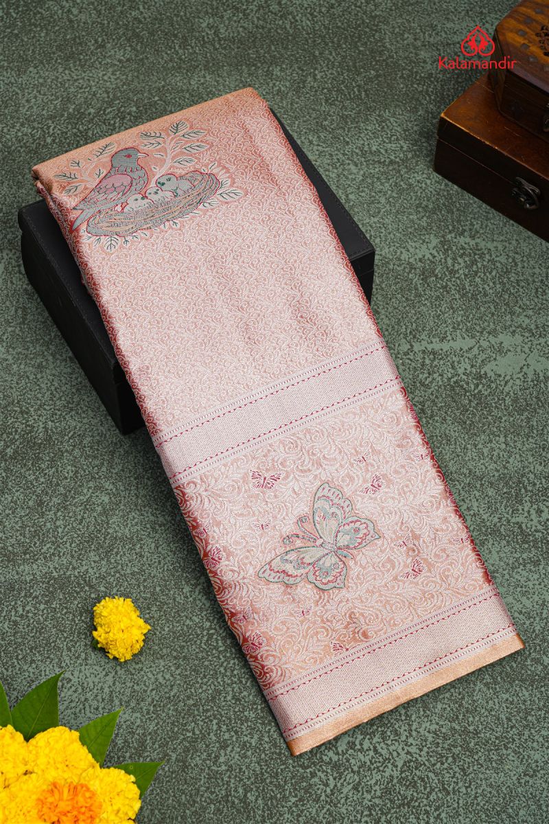 LIGHT MAROON and RAMA BLUE FLORAL JAAL SILK BLEND Saree with SEMI PATTU