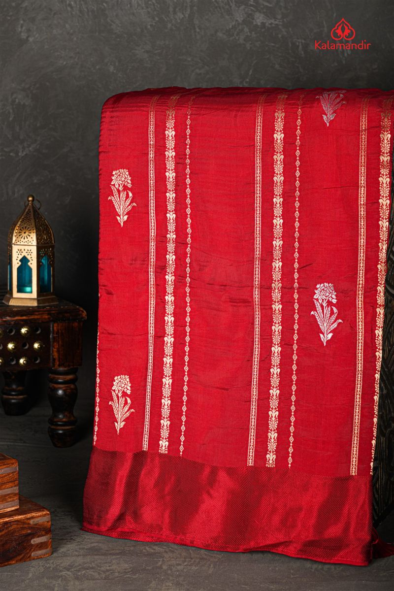 MAROON and GOLD FLORAL BUTTIS SILK Saree with BANARASI