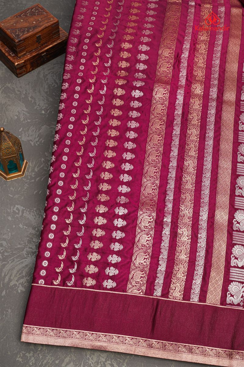 MAROON and GOLD BUTTIS SILK Saree with BANARASI