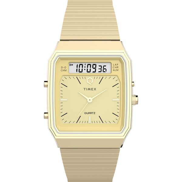 Q Timex Champagne Rectangle Dial Ana-