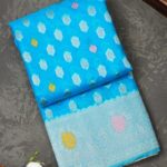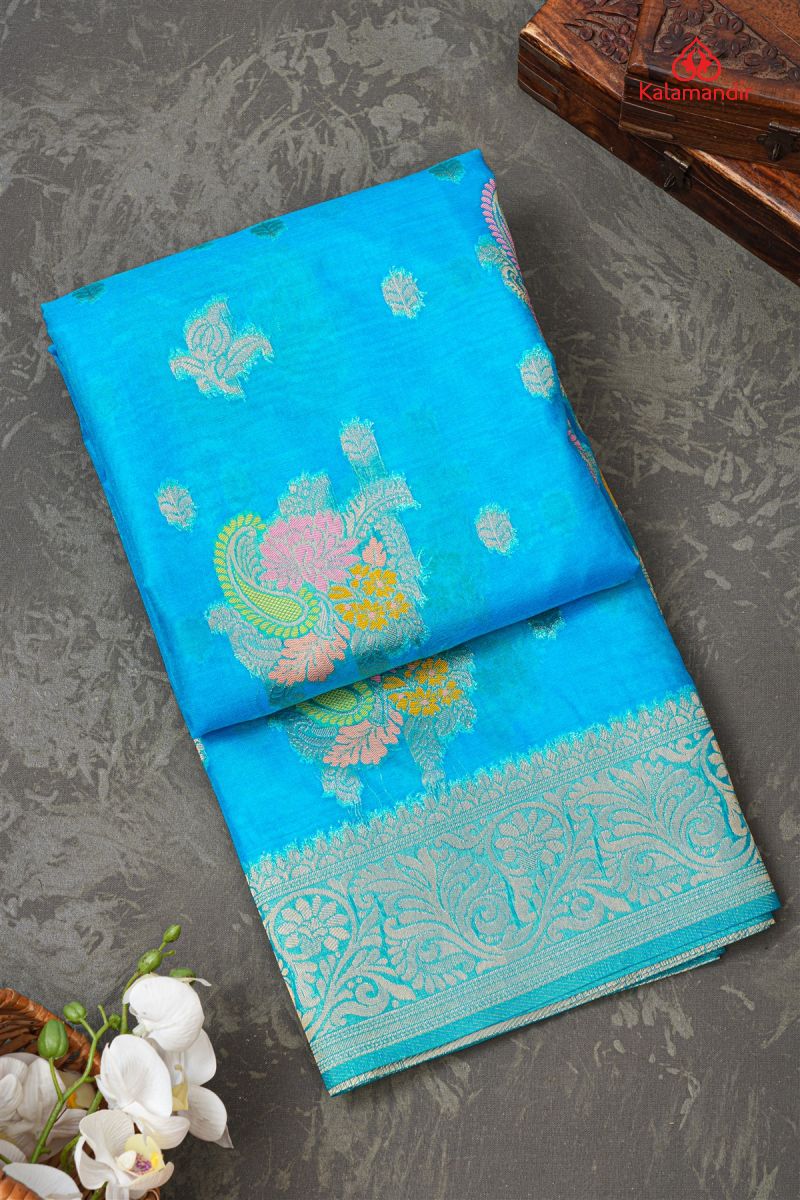 BLUE and GOLD MOTIFS KORA Saree with BANARASI