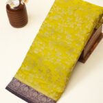 Elegant Banarasi Silk Saree crafted from pure silk with intricate zari work. Perfect for weddings, this saree includes an unstitched blouse piece for a complete look. Handwoven in Varanasi.