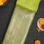 GREEN and PURPLE FLORAL JAAL SILK BLEND Saree with SEMI PATTU