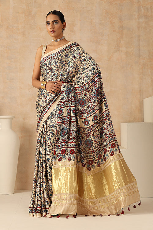 Jahangir Khatri – Indigo Blue Ajrakh Modal Saree – 010