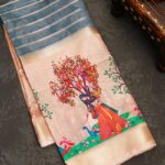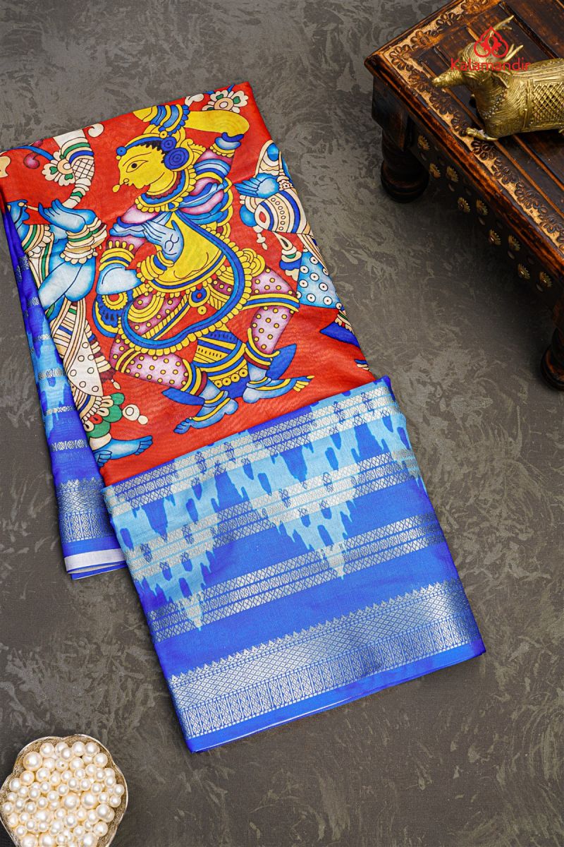 MULTI and BLUE KALAMKARI PRINT SILK Saree with FANCY