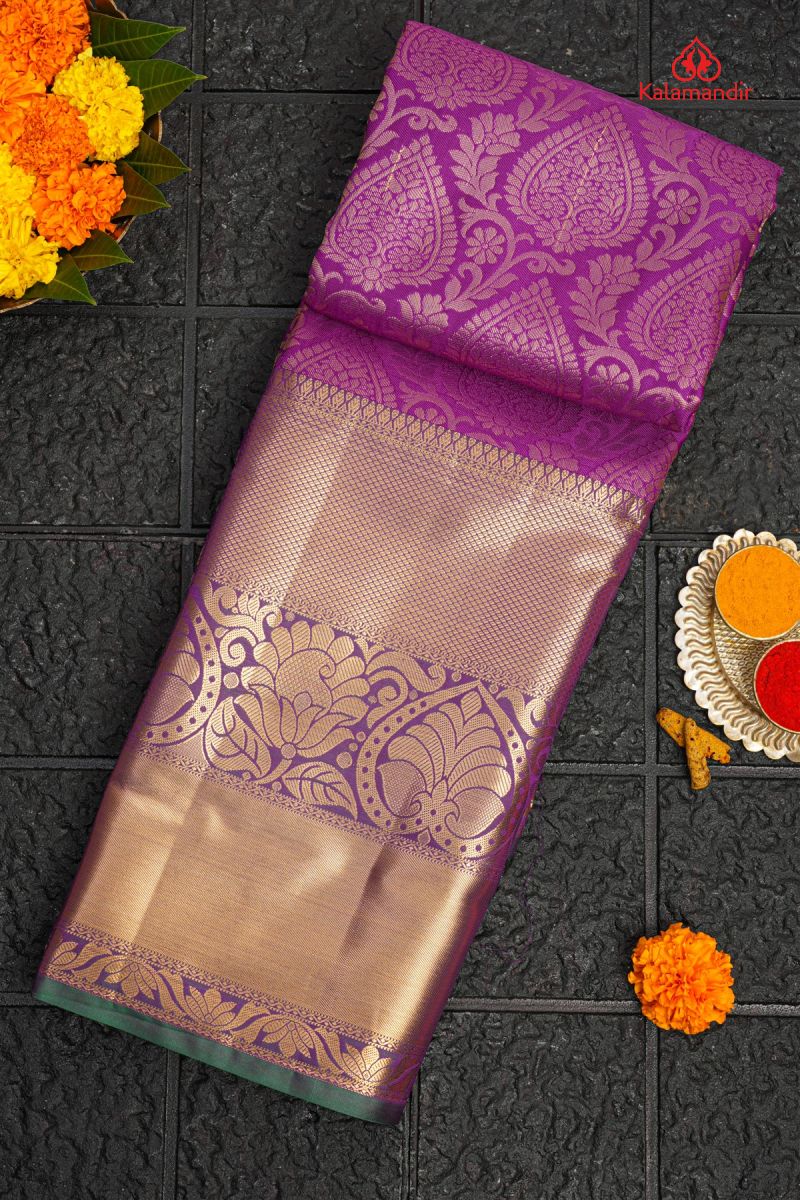Voilet Color with Small Round Zari Booties and Heavy pallu
