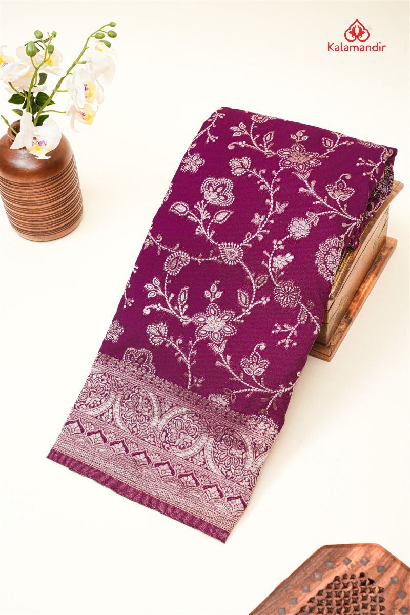 PURPLE and WHITE FLORAL JAAL GEORGETTE Saree with FANCY